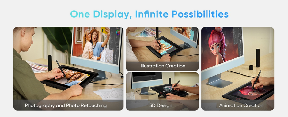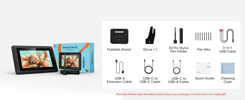 XP-PEN Artist 13.3 Pro V2, 16K X3 Pro Smart Chip Stylus, 99% sRGB, IPS, 16:9, 1920 x 1080, 5080 LPI, PS 16384, 200 RPS, include stand portabil si cablu 3-in-1
